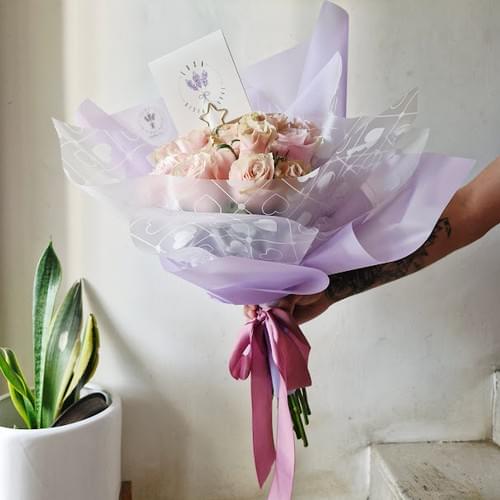 Ramo de 24 rosas con papel coreano y liston de seda.